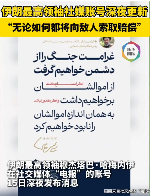 bbin 伊朗最高魁首社媒账号夜深更新 重申“将向敌东谈主索赔”