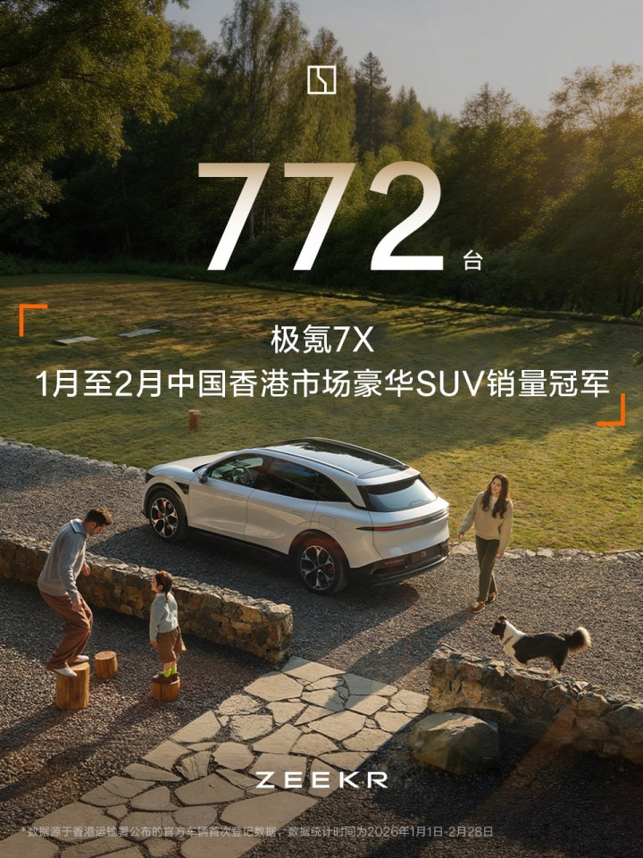 日前,极氪汽车官方书记,凭据香港交通署以及澳大利亚VFACTS 2026年2月数据,极氪7X在中国香港市集1-2月累计销售772台、澳洲市集销售628台,均为豪华SUV销量冠军。连络贵寓败露,bbin自2025年5月出海以来,极氪7X已插足人人40多个主流市集,以“全家齐欢腾”的居品口碑斩获人人超10万用户招供,包括泰国拳王播求、马来西亚羽球据说李宗伟等国外星级用户,成为中国汽车高质地出海的代表之一。