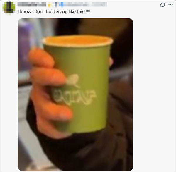 有网友提议其端咖啡杯的姿势不寻常。“我知谈我不这么拿杯子。”“莫得东谈主类会像这么端着咖啡杯。”