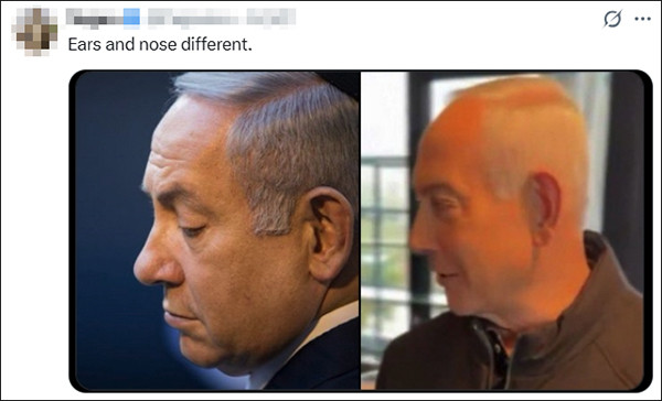 还有网友把视频画面和内塔尼亚胡贵寓图作对比,称耳朵和鼻子不同样。