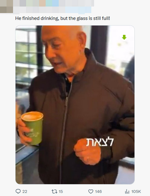 不外,也有小部分网友为视频的真确性讨论,解释部分被指出的“疑窦”。对于液面莫得着落的问题,讨论者以为,咖啡杰出烫,内塔尼亚胡仅仅小啜了一下。
