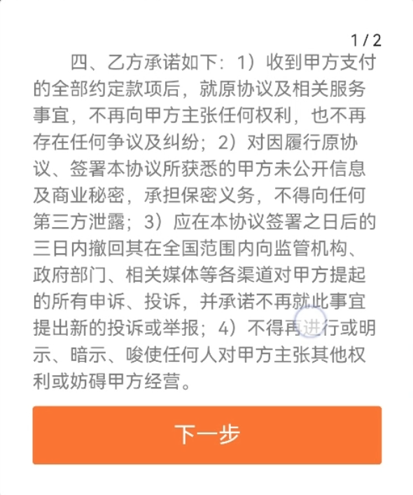 损失于今,宋杨与平台之间的“拉锯战”一直不时到面前。他向记者泄露:“那时股掌柜让我签退款条约,说签了就能退款。可我仔细稽查条约后才发现,里面还藏着撤诉声明与息争条约。”