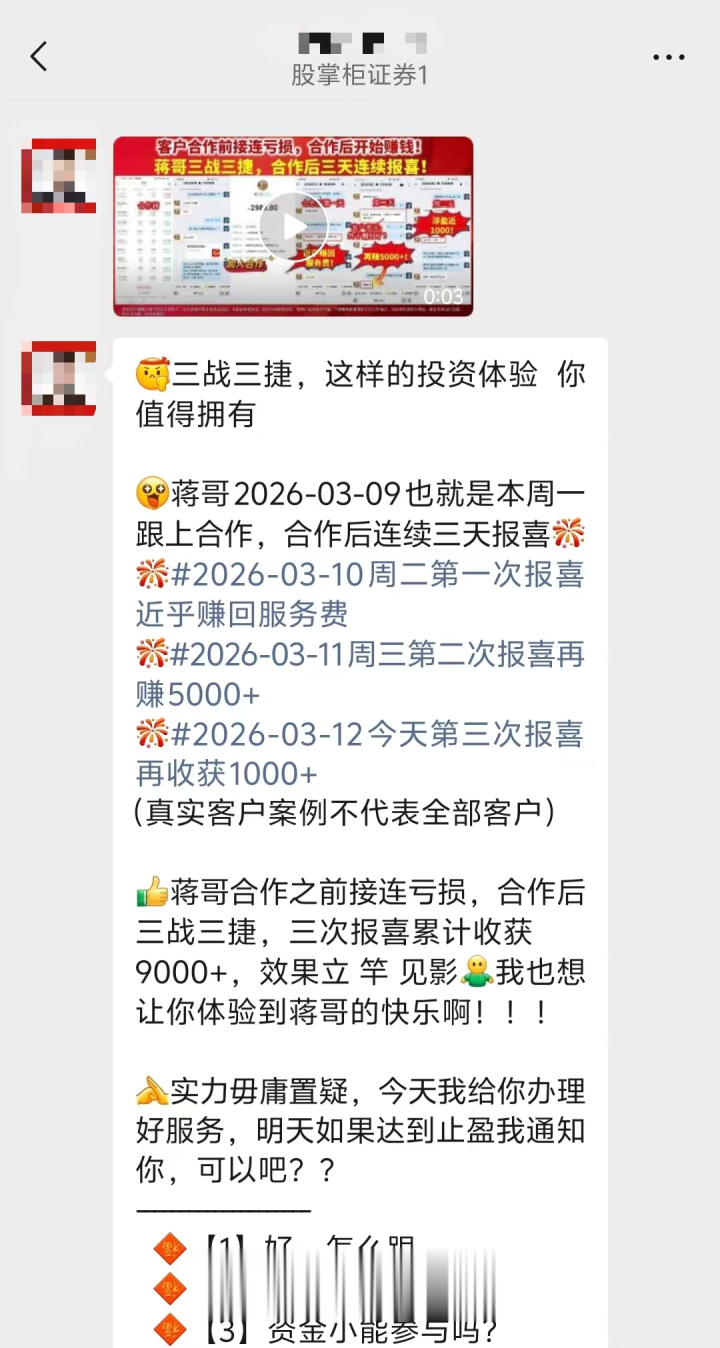 一模一样的脚本,也在股民敏敏身上重演。2025年1月,敏敏刷某视频平台时被一条股票保举视频吸引,不异是零基础、念念投资的痛点,让她点进联络、添加了股掌柜客服东谈主员的微信,开头,对方闭口无言收费,只柔顺地免费推送股票代码,配上海量“客户盈利截图”,年复一年地进行“洗脑式”轰炸。