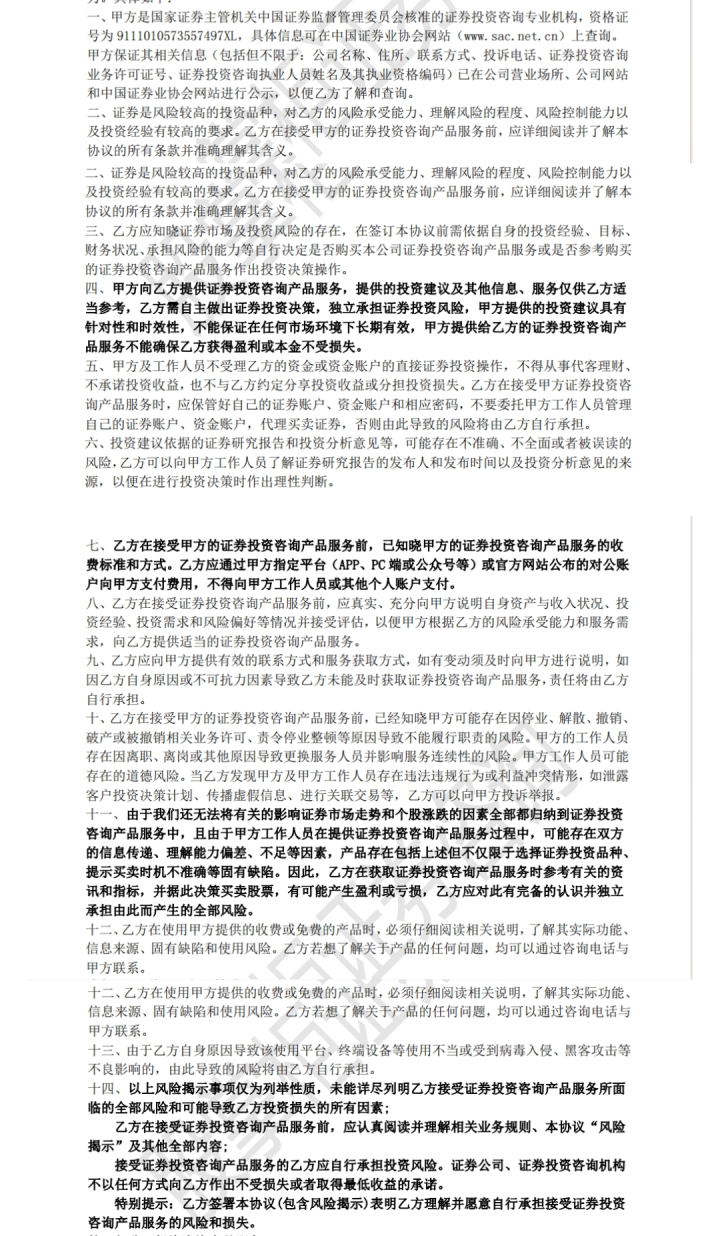 此外,合同还涌现,乙方(投资者)在摄取证券投资参谋产物行状前,应信得过、充分向甲方(股掌柜)诠释自己资产与收入现象、投资申饬、投资需乞降风险偏好等情况并摄取评估,以便甲方根据乙方的风险承受才能和行状需求,bbin向乙方提供符合的证券投资参谋产物行状。