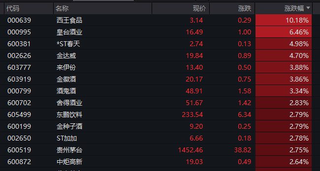 多只酒类股大涨