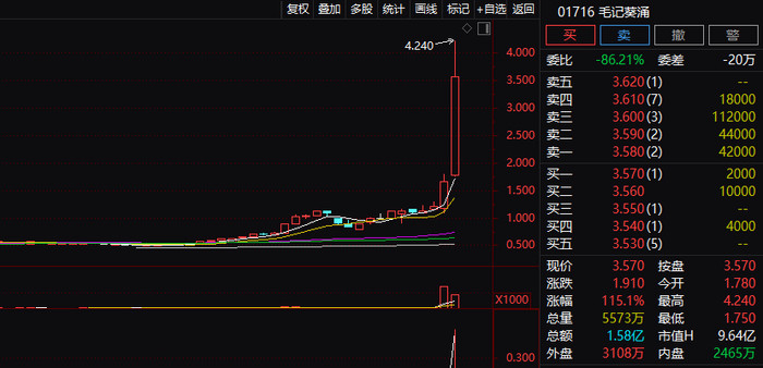 bbin 港股,一忽儿大涨!毛记葵涌,暴涨超150%