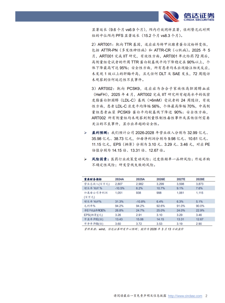 公司积极谋求计谋转型,2025年先后完成参股晨泰医药和控股锐正基因两大并购来回,致力于构建短期、中期、遥远相皆集的产物管线组合,旨在冲破对单一产物的依赖。1)通过参股晨泰医药,公司赢得1类翻新药佐利替尼的国内营业化权益,该产物2024年11月获批上市,2025年12月纳入国度医保目次,有望短期内孝顺功绩增量;2)通过控股锐正基因,公司告捷参预基因剪辑颐养前沿界限,赢得ART001和ART002等早期研发管线,有望为遥远成长性奠定基础。