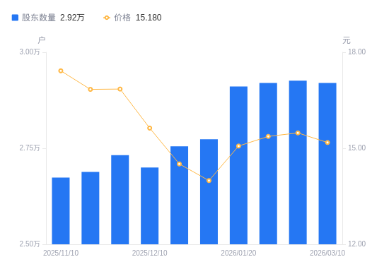 日历A股户数(户)流畅A股户均合手股数(股)户均合手股市值(万元)2026-03-102920112729.1619.322026-02-102925912703.9319.672026-01-302919912730.0419.572026-01-202911012768.9619.242025-12-312773613401.5118.752025-12-202754913492.4819.582025-12-102699713768.3621.522025-11-302732013605.5822.932025-11-202688413826.2323.282025-11-102673513903.2824.22