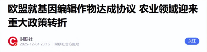 欧盟就基因裁剪作物达成条约 农业领域迎来要害政策回荡——财联社