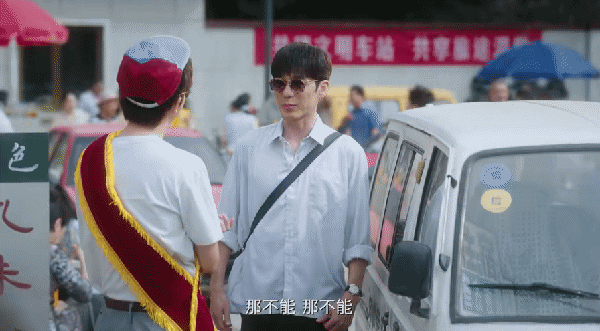 徐生效一出火车站,就被王沛禄饰演的长兴店员和小东北争着拉客。