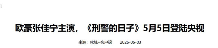 《欧豪张佳宁主演,〈刑警的日子〉5月5日登陆央视》(哈尔滨新闻网)