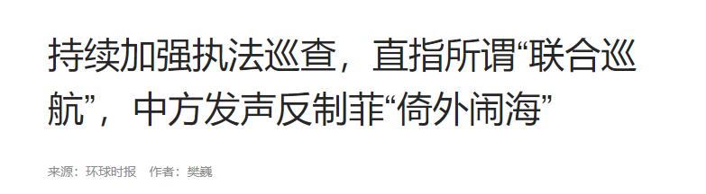 环球网:不息加强法则考察,直指所谓“都集巡航”,中方发声反制菲“倚外闹海”